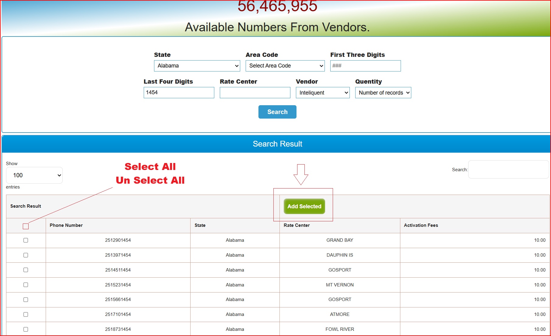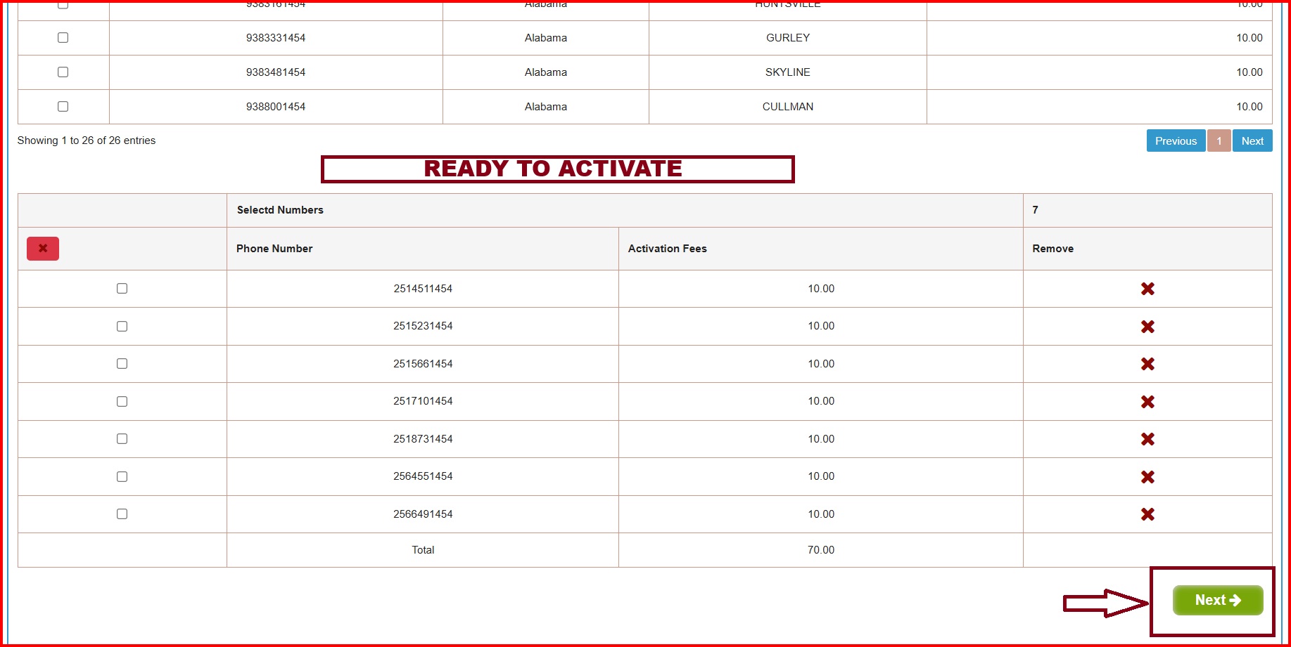 * When the user clicks **“Select All”**, all displayed numbers will be added to the **“Ready to Activate”** box.NEW ADITION MAX 30 Mins work