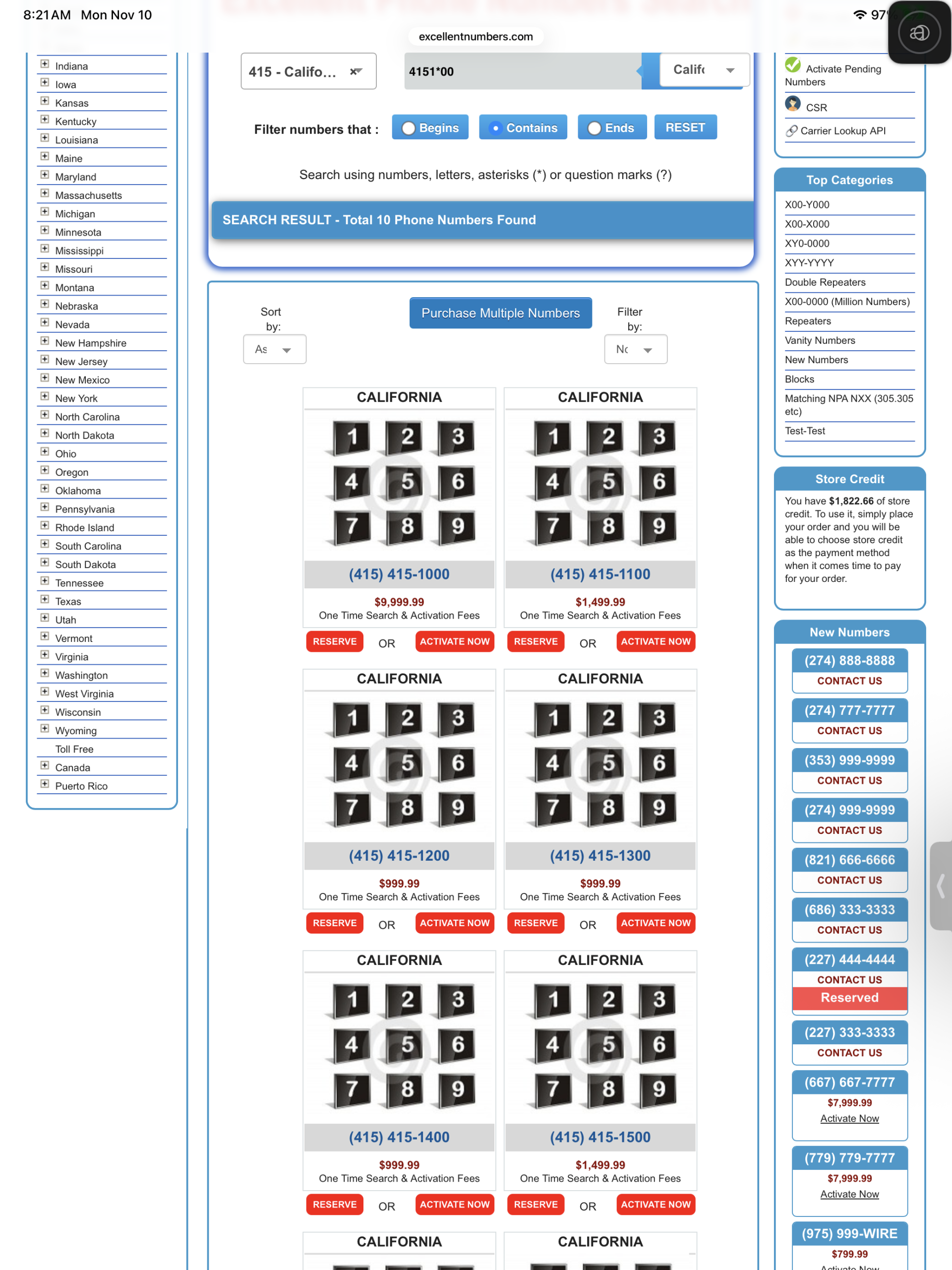 We can search and find numbers in your website frontend but the same numbers are not being displayed by your API pull. For example 415-415-1*00 gives related results on your website but your API results do not include any 415 area code numbers.