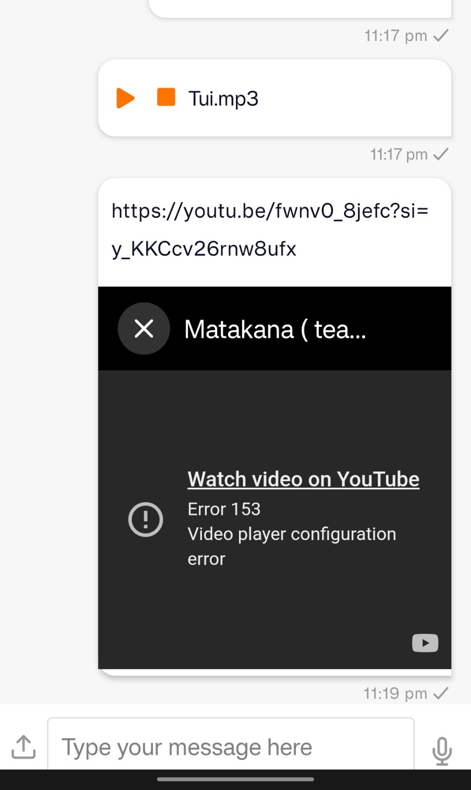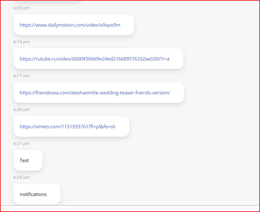 5. When i tried adding links from othre sources Vimeo, Youtube, Dailimotion the thumbs of the video can be seen but when i click on the video it still sends outside of the app and still not previewing videos within the friends app chat, could you please check this?