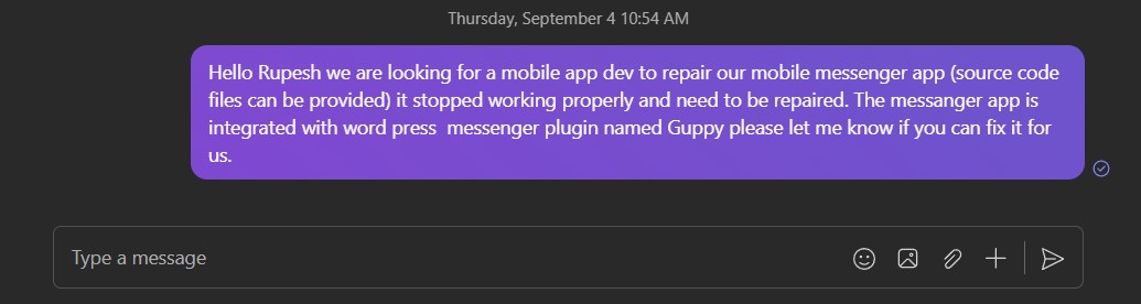 Nishit we have sent a message on teams to your company manager Rupesh regarding our Friends App repair but he is not responding could you please ask Rupesh if they can repair our mobile app. If not we will source from other companies.