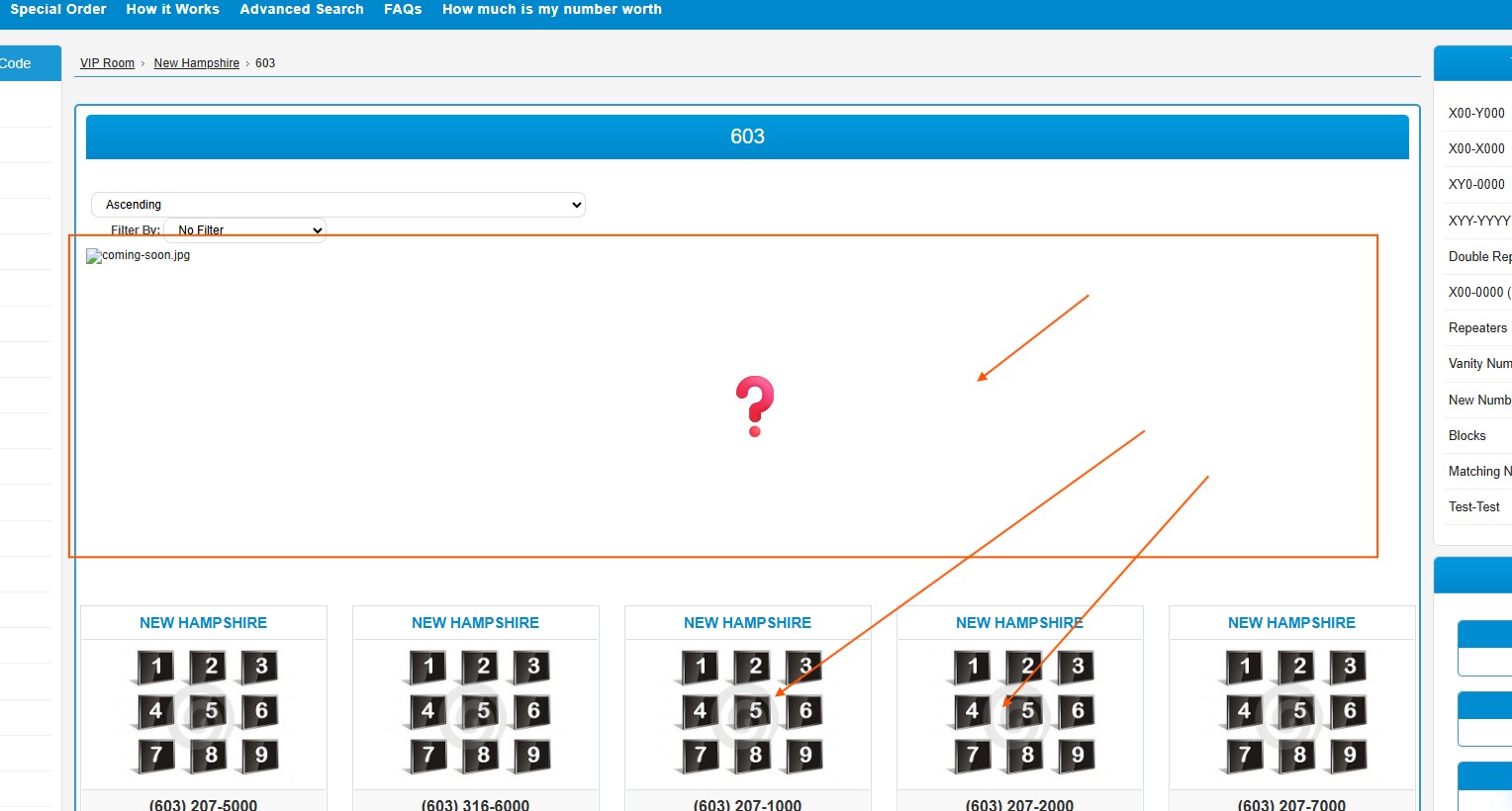 2. Home page looks a bit messy some numbers for unregistered users are visible and some are not please make sure that we stick to consistency.3. When we click on any area codes it says that restricted access, please remember visitors CAN SEE numbers but can not see prices.